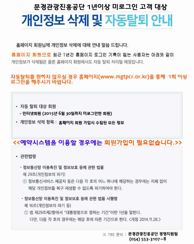 문경관광진흥공단 개인정보 삭제 안내