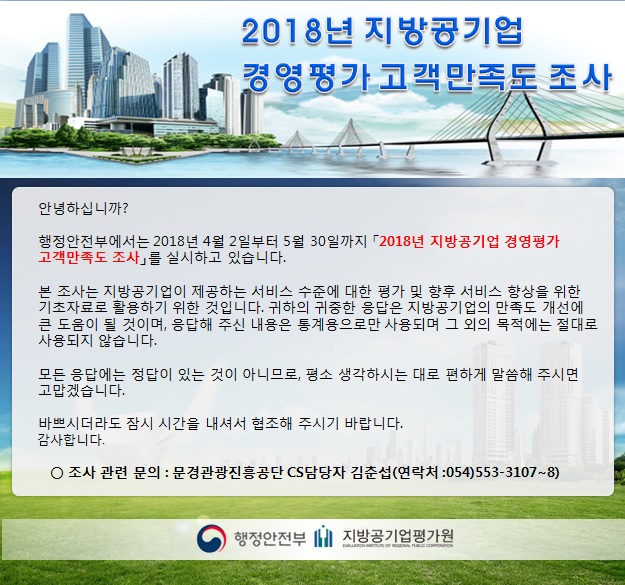 | 2018년 지방공기업 경영평가 고객만족도 조사를 위한 개인정보 제3자제공 알림 | |||||