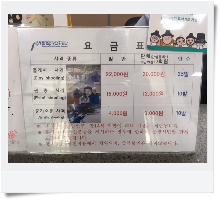 꿀tip! 관광사격장은 문경관광진흥공단에서 운영하여 공단의 숙박시설(국민여가캠핑장, 불정자연휴양림, 유스호스텔)과 철로자전거 이용 시 할인혜택이 있어 참 좋은것 같아요! 문경으로 여행오셔서 한번 체험해 보세요~ 이상으로 문경관광사격장 체험후기를 마치겠습니다~ 강력추천! 문경관광사격장! |