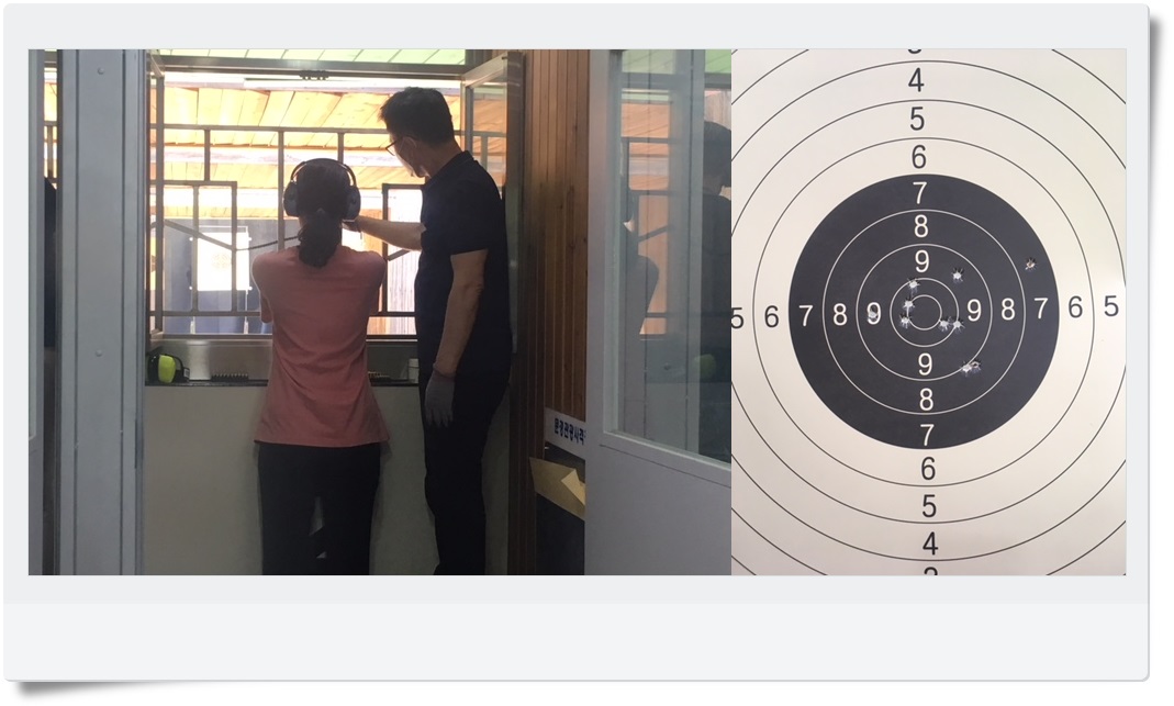지도 선생님의 사격요령을 귀담아 들은 결과..!! 제가 사격한 표적지입니다.. 잘했죠? ㅎ (저는 기념으로 표적지 챙겨갔습니다~) 저보구 잘한다며.. 경찰 공무원 준비 해보라구 추천하시네요..ㅎ 마지막은 공기소총 사격! 공기소총은 공기압으로 사격을 해서 그런지 소리와 반동이 없어 무난히 즐겼던것 같아요~ 이것으로 모든 사격체험 종료! 평생 추억으로 남을 소중한 경험을 한것 같습니다~