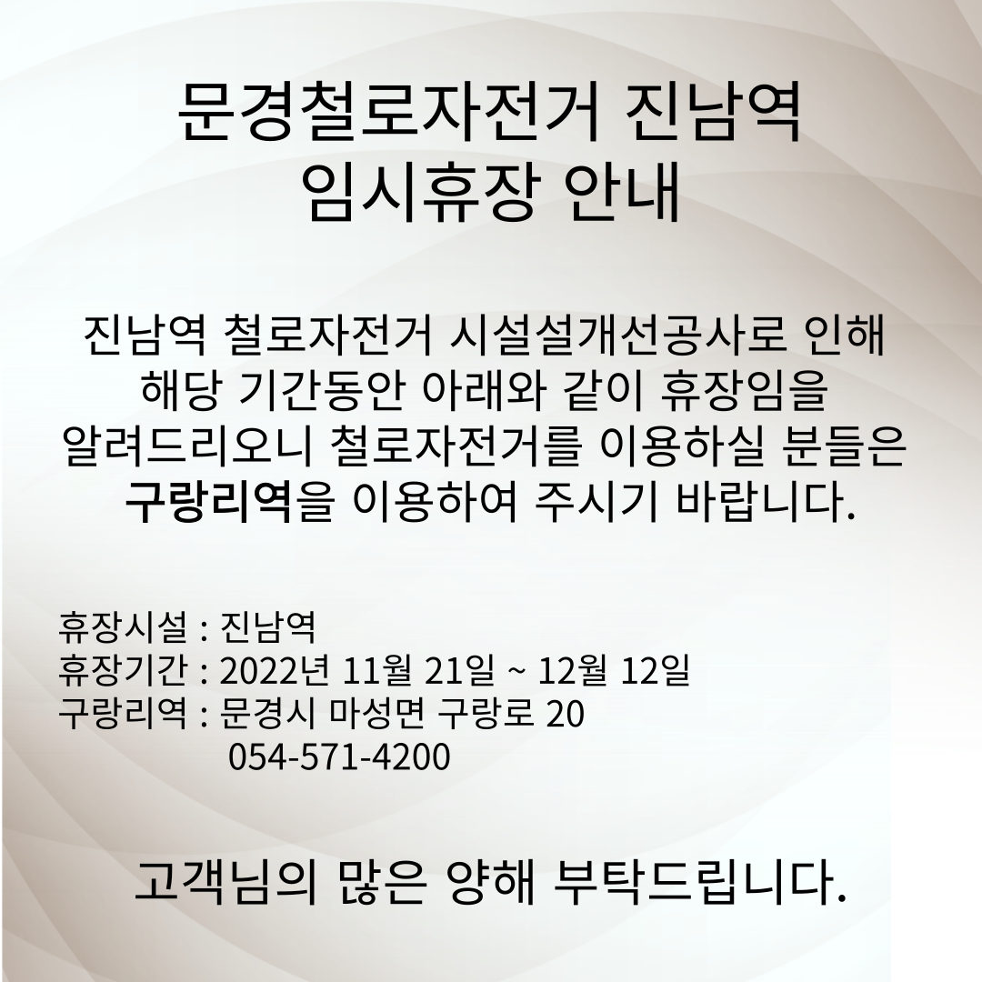 문경철로자전거 진남역 휴장안내
