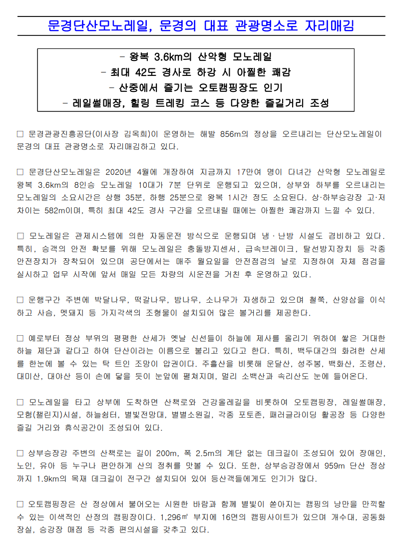 문경단산모노레일, 문경의 대표 관광명소로 자리매김