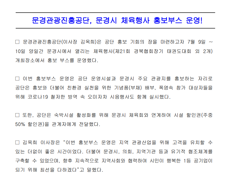 문경관광진흥공단, 문경시 체육행사 홍보부스 운영!