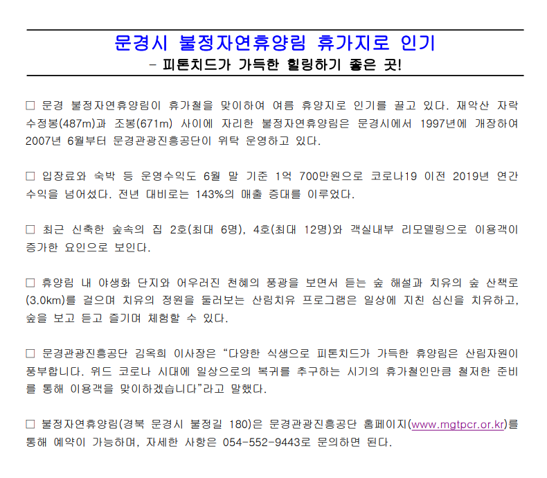 고객만족과 감동이 함께하는 문경관광진흥공단